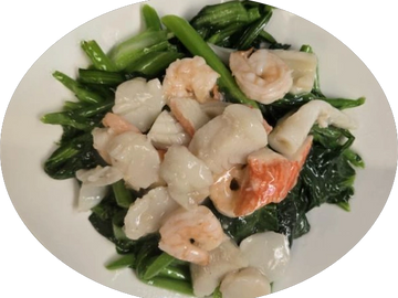 sauteed veg w/ chicken, beef, shrimp, Calamari , crab meat.